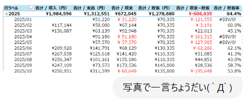 収入ないのに貯蓄してるってことは単に貯金をすり減らしているだけなんですが